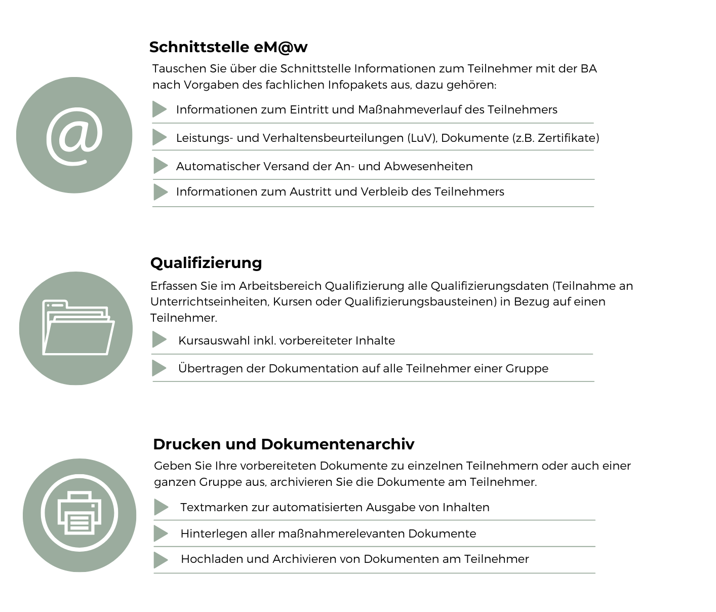 Unsere stepnova-Lösung mit integrierter eM@w-Schnittstelle für Ihr Eingangsverfahren (EV) und den Berufsbildungsbereich (BBB)